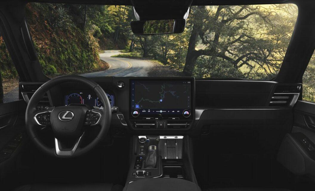 ภายในออกแบบภายใต้คอนเซ็ปต์ Tazuna แน่นอนว่าเป็นแบบ 3 แถว 7 ที่นั่งทรงหรูหราที่สามารถปรับและพับได้ตามความต้องการขนของได้อย่างจุใจโดยเบาะตอนที่สองพับได้แบบ 40/60 และตอนที่สามพับได้แบบ 50/50 ด้วยระบบไฟฟ้า หุ้มด้วยหนังแท้ Chateau NuLuxe และ NuLuxe สีเทาเข้ม/ดำ ดำล้วน และน้ำตาล/ดำ พร้อมสิ่งอำนวยความสะดวกมากมายทั้ง คอนโซลหน้าดีไซน์เหลี่ยมคลาสสิกชวนให้นึกถึง Toyota Land Cruiser 70 พร้อมช่องแอร์ทรงตัววีซ้าย-ขวาดีไซน์เด่นชัด มาตรวัดเรืองแสงพร้อมจอ MID ขนาดใหญ่ 12.3 นิ้ว ข้างบนมีจอแสดงข้อมูลการขับขี่แบบ Head Up Display มีจอสัมผัสขนาดใหญ่ 14 นิ้ว รองรับความบันเทิงไร้สาย Apple Carplay และ Android Auto พร้อมช่องแอร์ใต้จอสัมผัส แถมมีลำโพงคุณภาพจากค่ายขาประจำอย่าง Mark Levinson 21 จุดรอบคัน และลำโพงไฮเอนด์ 10 จุด
