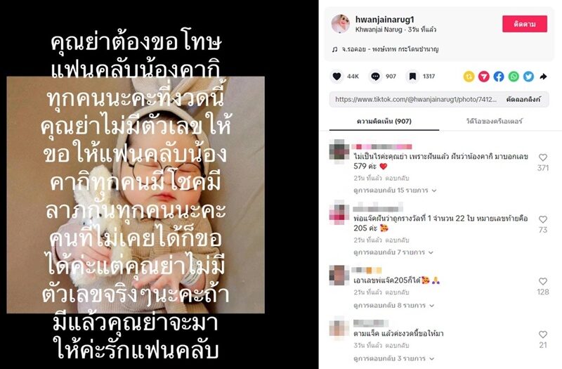 แจกโชคทุกงวด งวดนี้จะพลาดได้ยังไง มาแล้ว เลขเด็ด น้องคากิ ลูกชาย แจ็ค แฟนฉัน หลังจากก่อนหน้านี้ ย่าเปิ้ล ของน้องคากิ โพสต์ขอโทษแฟนๆว่า