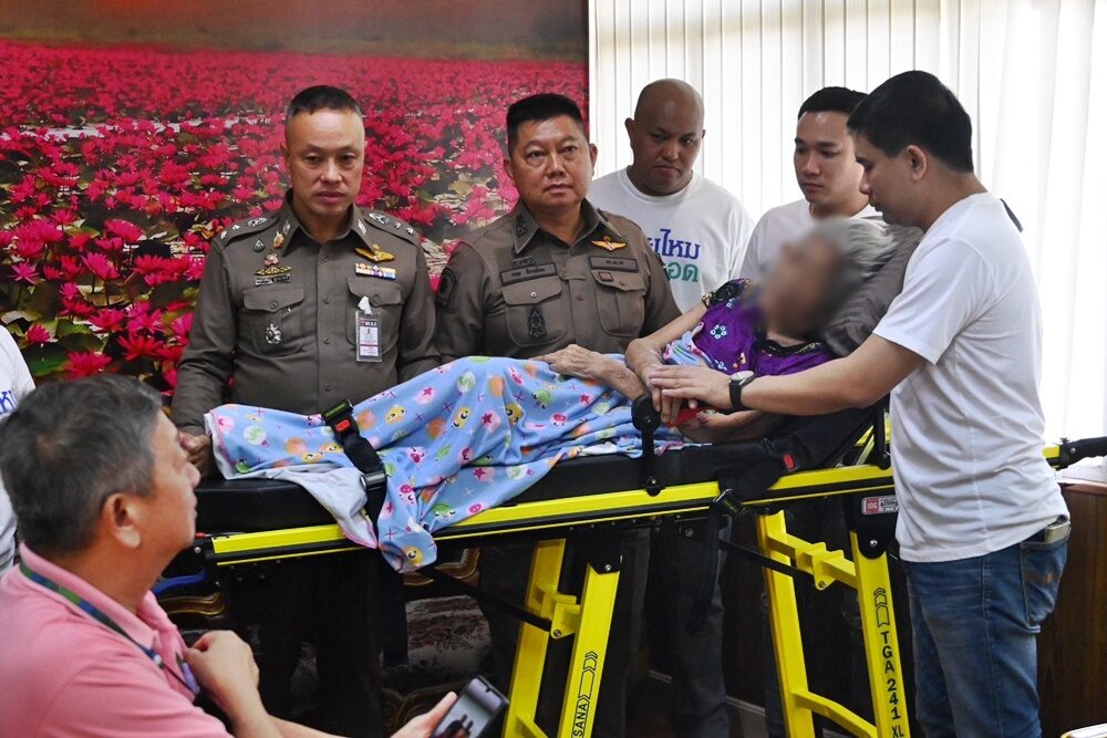 ผู้สื่อข่าวรายงานว่า คุณยายต้องนอนบนรถเข็น ตามร่างกายพบรอยช้ำ ปากบวม และฟันหักจากการถูกตี เมื่อสอบถามว่าคุณยายเจ็บหรือไม่ ยายก็ตอบว่าเจ็บ กลัวไหม ยายก็ตอบว่ากลัว ยายบอกว่าหิวข้าว และปวดหัว พร้อมเอามือจับหัว