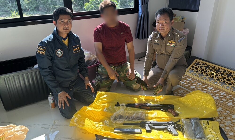 พร้อมด้วยเจ้าหน้าที่ตำรวจ กก.4 บก.สอท.5 นำหมายค้นศาลจังหวัดสงขลา ที่ 201/2567 ลง 6 ก.ค.2567 เข้าค้นบ้านหลังหนึ่งใน อ.จะนะ จ.สงขลา จัมกุมตัวนายอรุณ (สงวนนามสกุล)อายุ 33 ปี พร้อมของกลางอาวุธปืน AK47 ไม่มีทะเบียน 1 กระบอก