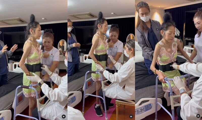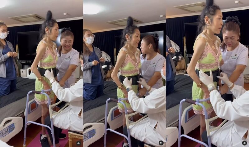 ปาฏิหาริย์ต้องมา คุณหญิงแมงมุม ยืนเองได้ครั้งแรก สามีสุดภูมิใจโพสต์คลิปเดินได้หลายสิบก้าว