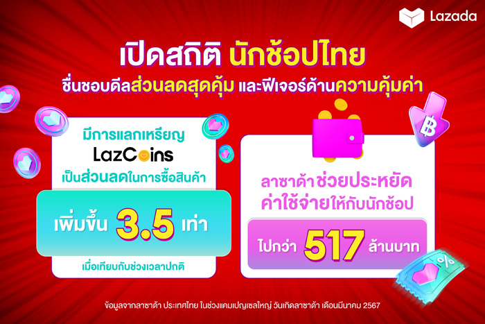 มีการแลกเหรียญ LazCoins เป็นส่วนลดในการซื้อสินค้า เพิ่มขึ้นถึง 3.5 เท่า เมื่อเทียบกับช่วงเวลาปกติ