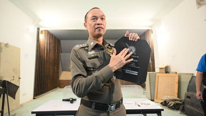 ตร. พิสูจน์ให้เห็นชัดๆ ยิงเสื้อเกราะโชว์ กระสุนไม่ทะลุ เลื่อยก็ไม่ขาด ยันไม่ได้ทำจากไม้อัด ลั่นตรงมาตรฐานสากล