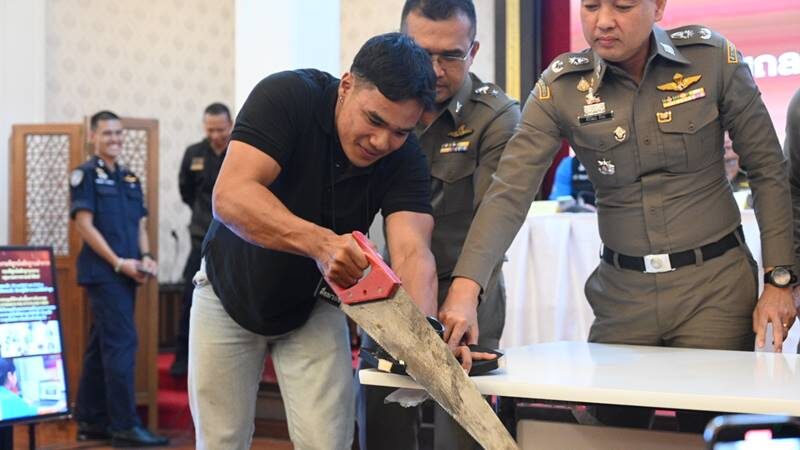 พิสูจน์ให้เห็นชัดๆ ตำรวจยิงเสื้อเกราะโชว์ กระสุนไม่ทะลุ เลื่อยก็ไม่ขาด ยันไม่ได้ทำจากไม้อัด