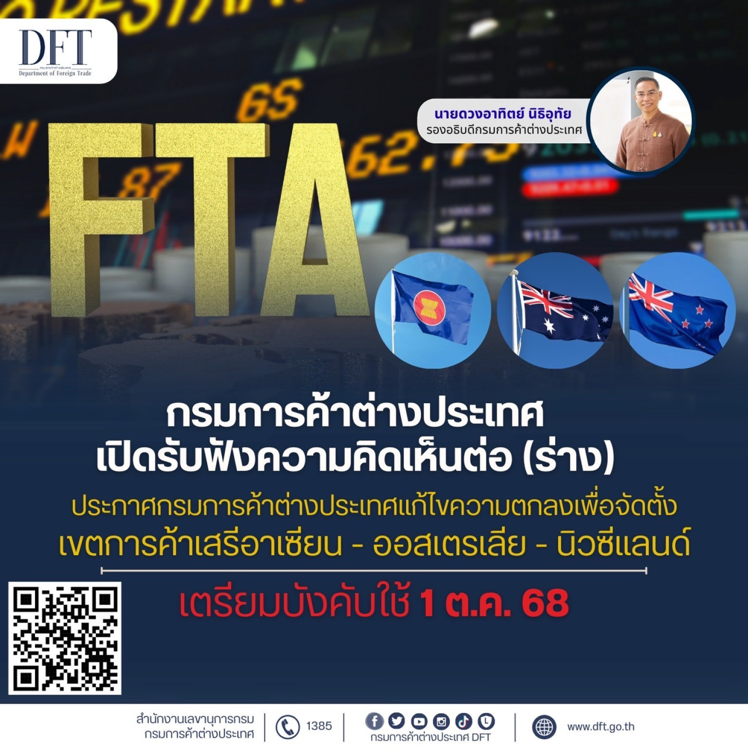 คต.เปิดรับฟัง (ร่าง) ประกาศแก้ไขจัดตั้งเขตการค้าเสรีอาเซียน-ออสเตรเลีย-นิวซีแลนด์ บังคับใช้ 1 ต.ค. 68
