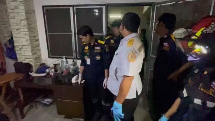ที่เกิดเหตุเป็นบ้านเช่า 2 ชั้นบริเวณห้องชั้นที่ 1 พบผู้บาดเจ็บสาหัสชื่อ นายเอ (นามสมมติ) อายุ 56 ปี สภาพมีบาดแผลถูกแทง ฟันที่ศีรษะ ใบหน้า ตามลำตัวหลายแห่ง นอนหมดสติจมกองเลือดอยู่ จึงช่วยปฐมพยาบาลปั๊มหัวใจ ประมาณ 30 นาที ผู้บาดเจ็บทนพิษบาดแผลไม่ไหวเสียชีวิตในเวลาต่อมา