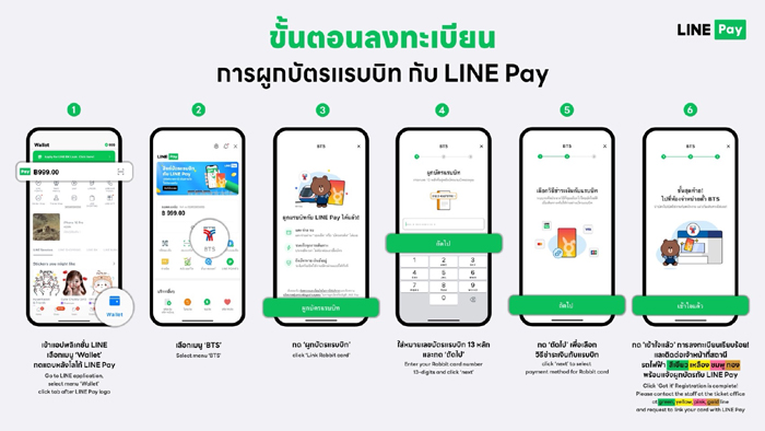 ผู้ใช้สามารถเชื่อมบัตรแรบบิทเข้ากับบัญชี LINE Pay ได้ง่าย ๆ ตามขั้นตอนดังนี้