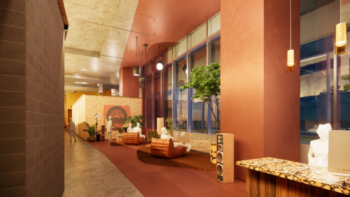 การออกแบบพื้นที่เหล่านี้จะไม่ได้จำกัดอยู่เพียงแค่ฟังก์ชันการใช้งาน แต่ยังมอบประสบการณ์เชิงพื้นที่ (Spatial Experience) ให้น่าจดจำโดยได้รับแรงบันดาลใจจากความหลากหลายทางวัฒนธรรม ของพื้นที่ในกรุงเทพฯ ผสานองค์ประกอบทางสถาปัตยกรรม ภูมิทัศน์ เทคโนโลยี อาทิ Web3 และ Metaverse เพื่อเชื่อมโยงครีเอเตอร์ไทยสู่สายตาชาวโลก อีกทั้งยังเป็นสำนักงานและสตูดิโอระดับ A+ ที่รองรับการทำงานของศิลปินตลอด 24 ชั่วโมง พร้อมขับเคลื่อนและสนับสนุนการสร้างสรรค์ในยุคดิจิทัล