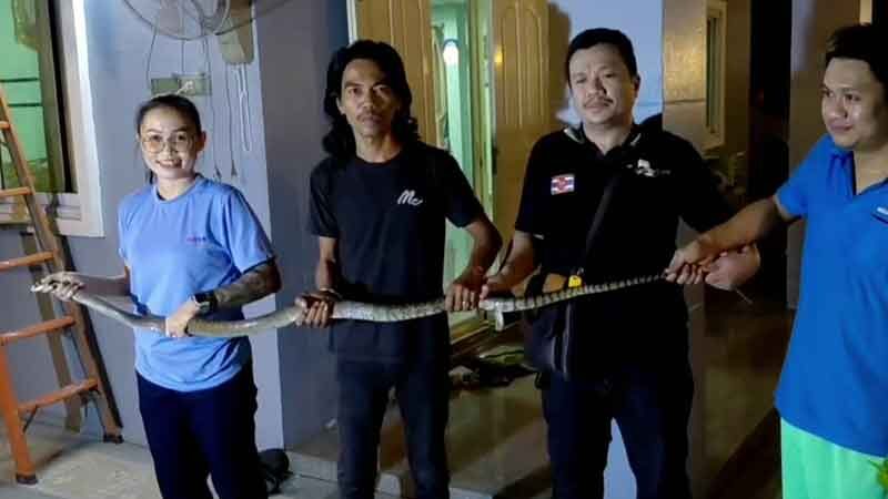 ด้านนายมงคล อายุ 37 ปี น้าของเด็กชายเอ บอกว่า ได้รับโทรศัพท์จากพี่สาวแจ้งว่ามีงูเข้าบ้าน จึงรีบเดินทางมาดูสถานการณ์ ก่อนติดต่อกู้ภัยให้มาช่วยจับงู หลังจับงูได้ เจ้าหน้าที่ได้นำงูใส่ถุงปุ๋ย เพื่อนำไปปล่อยคืนสู่ธรรมชาติต่อไป พร้อมเตือนประชาชนให้ระวังสัตว์เลื้อยคลานช่วงหน้าฝน ซึ่งมักออกหากินหรือหลบฝนเข้ามาในบ้านโดยไม่รู้ตัว