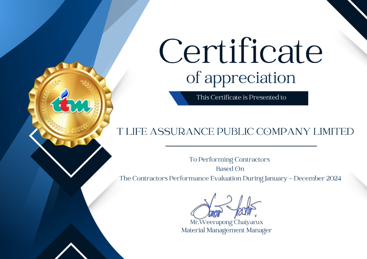 ที ไลฟ์ ประกันชีวิต ได้รับประเมินผลเกรด A จากการดำเนินงานประจำปี 2567จากบริษัท ทรานส์ ไทย–มาเลเซีย (ประเทศไทย) จำกัด