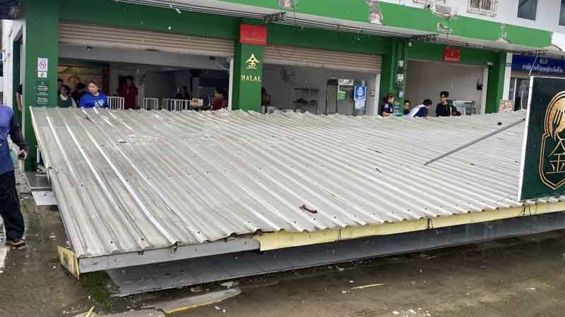 ฤทธิ์พายุวิภา ไม่ถึง5นาที ซัดโครงหลังคา ร้านอาหาร-ร้านค้า พังถล่มทั้งแถบ15คูหา ทับชาวบ้านเจ็บ