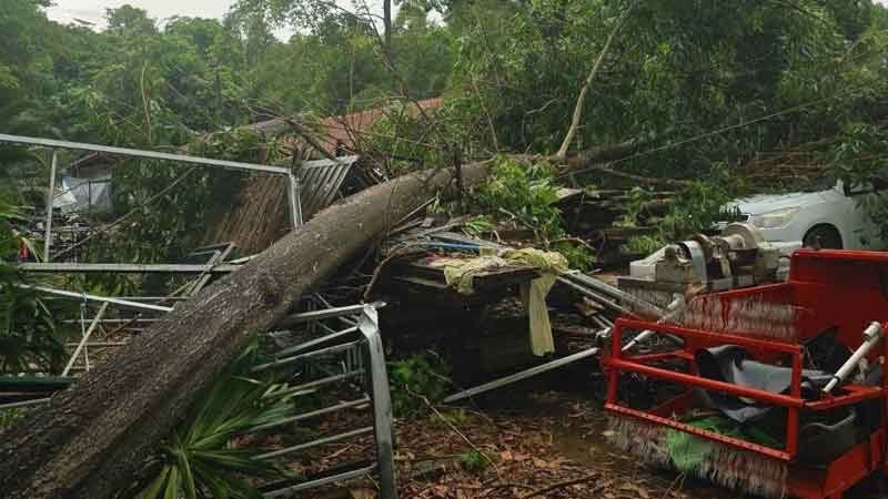 ฤทธิ์พายุวิภา ไม่ถึง5นาที ซัดโครงหลังคา ร้านอาหาร-ร้านค้า พังถล่มทั้งแถบ15คูหา ทับชาวบ้านบาดเจ็บ ต้นไม้ล้มหักโค่นล้มใส่บ้านเรือนประชาชน ถนนหนทาง