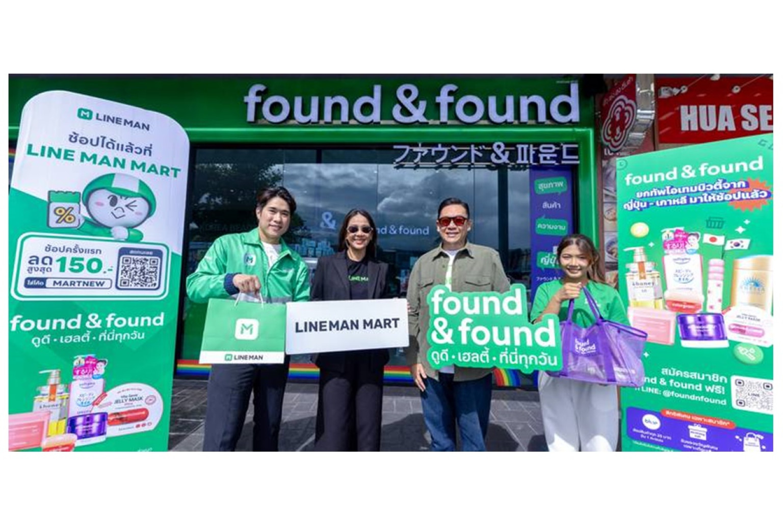 ด้าน คุณสุธาวัลย์ ประสงค์ดี ผู้อำนวยการอาวุโสฝ่ายพัฒนาธุรกิจ LINE MAN Wongnai กล่าวเสริมว่า ปัจจุบัน LINE MAN เป็นแพลตฟอร์มออนดีมานด์อันดับ 1 ของไทย ที่มีผู้ใช้งานครอบคลุมทั่วประเทศกว่า 10 ล้านคนทั่วประเทศ ที่นอกจากบริการสั่งอาหารแล้ว เรามีบริการสั่งซื้อสินค้าอุปโภค-บริโภคและของใช้ต่างๆ ภายใต้ชื่อ LINE MAN MART ทำให้เราเห็นอัตราการเติบโตของคำสั่งซื้อสินค้าในหมวดสุขภาพและความงามเฉลี่ยอยู่ที่ 80% ต่อปี สะท้อนถึงพฤติกรรมของผู้บริโภคที่หันมาใช้บริการเดลิเวอรี่ในการสั่งซื้อสินค้ามากขึ้น โดยเฉพาะในกลุ่มคนทำงานและผู้บริโภค ช่วงอายุ 25-40 ปี ที่มองหาสินค้าคุณภาพ ส่งทันทีและเข้าถึงง่าย การร่วมมือกับ found & found จึงเป็นอีกก้าวสำคัญในการเพิ่มทางเลือกให้กับผู้ใช้ โดยเฉพาะผู้ที่มองหาผลิตภัณฑ์บิวตี้จากญี่ปุ่นและเกาหลีในราคาคุ้มค่า เราเชื่อมั่นว่าสินค้าที่คัดสรรมาอย่างพิถีพิถันจาก found & found จะสามารถตอบโจทย์ความต้องการของผู้ใช้ LINE MAN MART ได้อย่างแน่นอน