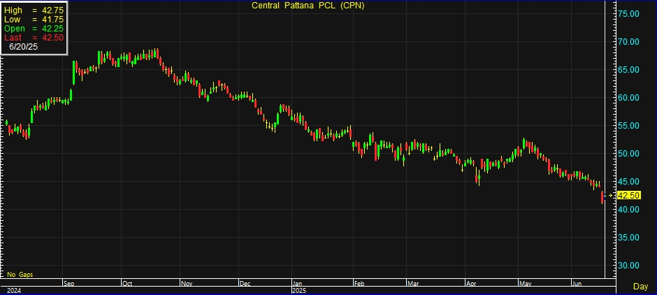 อัพเดต 20 มิ.ย. 2568 เวลา 16.31 น. • เผยแพร่ 20 มิ.ย. 2568 เวลา 04.12 น. • ข่าวหุ้นธุรกิจออนไลน์ผู้สื่อข่าวรายงานว่า วันนี้ (20 มิ.ย. 68) ราคาหุ้น บริษัท เซ็นทรัลพัฒนา จำกัด (มหาชน) หรือ CPN ณ เวลา 10:50 น. อยู่ที่ระดับ 42.50 บาท บวก 1.25 บาท หรือ 3.03% สูงสุดที่ระดับ 42.75 บาท ต่ำสุดที่ระดับ 41.75 บาท ด้วยมูลค่าการซื้อขาย 260.07 ล้านบาท