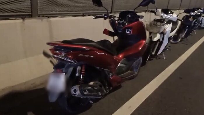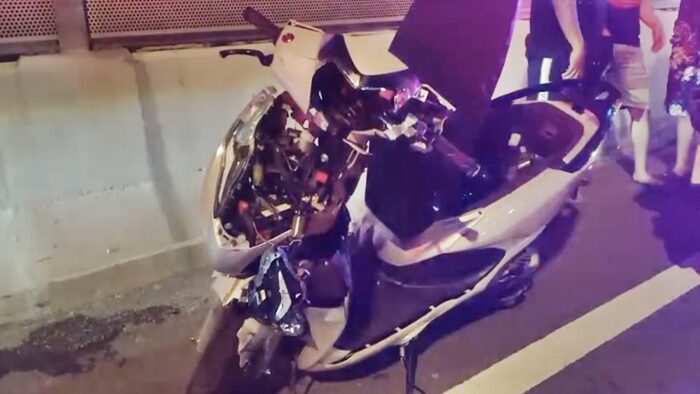 ห่างไปประมาณ 5 เมตร พบจักรยานยนต์ ยี่ห้อฮอนด้า ลีด ทะเบียน กทม. สภาพล้มคว่ำด้านหน้ารถพังยับเสียหาย ใกล้กันพบรถจักรยานยนต์ ยี่ห้อฮอนด้า พีซีเอ็กซ์ ทะเบียน ลพบุรี สภาพล้มคว่ำ ท้ายรถมีรอยเฉี่ยวชน