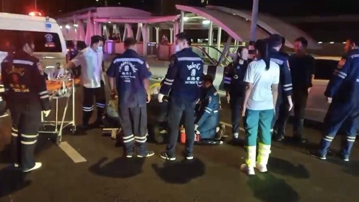 และมีผู้บาดเจ็บ 2 ราย ชื่อ นายเกริกไกร (ขอสงวนนามสกุล) อายุ 20 ปี เป็นคนขับขี่ และ น.ส.กัญญารัตน์ (ขอสงวนนามสกุล) อายุ 20 ปี คนนั่งซ้อนท้าย เจ้าหน้าที่รีบนำตัวส่งโรงพยาบาลสมเด็จพระปิ่นเกล้า