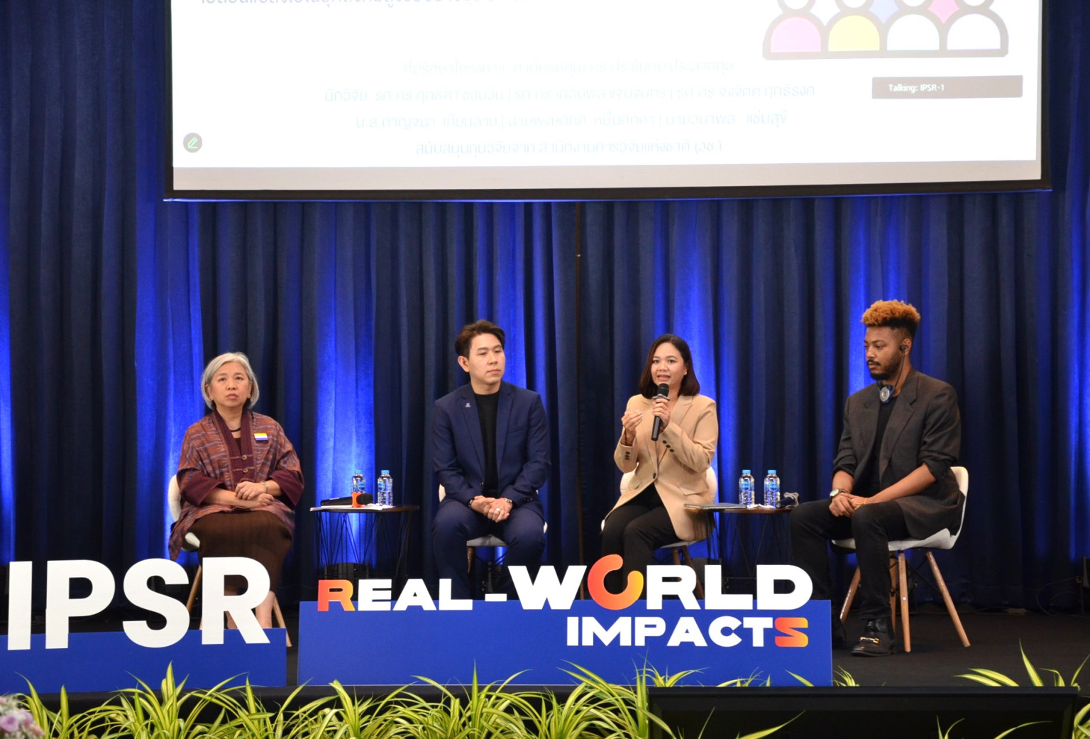 จากนั้น ได้เปิดเวทีแลกเปลี่ยนความรู้เกี่ยวกับงานวิจัยที่นำไปสู่ผลกระทบเชิงนโยบายในโลกจริง (Real-World Impacts) โดยเสวนาโต๊ะกลมเวทีแรก “EQUALITY สังคมที่ทุกคนเท่าเทียม” ดำเนินรายการโดย ดร.วาสนา อิ่มเอม ผู้เชี่ยวชาญจากกองทุนประชากรแห่งสหประชาชาติ (UNFPA) มีการย้ำถึงความสำคัญของการใช้ข้อมูลประชากรในระดับพื้นที่เพื่อออกแบบนโยบายที่ตอบโจทย์ประชาชนทุกกลุ่ม โดยเฉพาะอย่างยิ่งในประเด็นประชากรสูงวัยที่กำลังทวีความสำคัญในสังคมไทย รองศาสตราจารย์ ดร.ศุทธิดา ชวนวัน นำเสนอผลงานสะท้อนการเสริมสร้างศักยภาพบุคลากรองค์กรปกครองส่วนท้องถิ่น (อปท.) ด้วยการใช้ข้อมูลประชากรเพื่อขับเคลื่อนสังคมสูงวัยอย่างมีพลัง “โปรแกรมพีระมิดประชากร” (Population Pyramid Program - PPP) ซึ่งได้รับการพัฒนาเพื่อเสริมสร้างศักยภาพให้แก่ อปท. ในการมองเห็นโครงสร้างประชากรของตนเองแบบ เรียลไทม์ ทั้งด้านอายุ เพศ และแนวโน้มการเปลี่ยนแปลงเชิงประชากร โดยได้มีการนำร่องใช้ PPP ใน 20 อปท. จังหวัดนครปฐม พบว่า