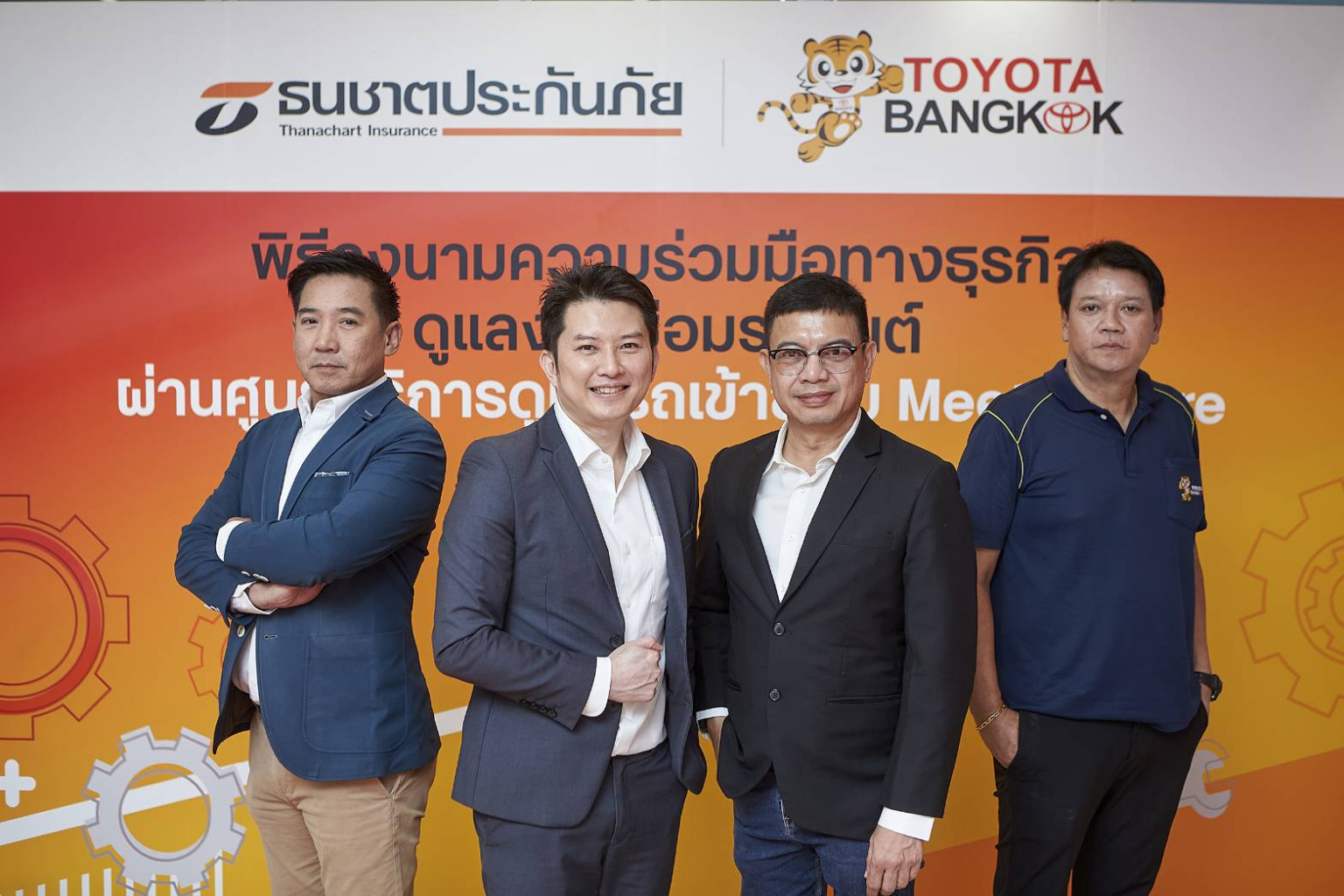 นายทีฆภัค ศรียุกต์วงศ์ รองประธานเจ้าหน้าที่บริหาร บริษัท ธนชาตประกันภัย จำกัด (มหาชน) กล่าวว่า “นับเป็นความร่วมมือครั้งสำคัญของสองบริษัทชั้นนำ เพื่อบรรลุวัตถุประสงค์ในโครงการ “ดูแลงานซ่อมรถยนต์ผ่านศูนย์บริการดูแลรถเข้าซ่อม Meet & Care” ด้วยการส่งมอบบริการเสริมพิเศษแก่ลูกค้าธนชาตประกันภัยที่ทำประกันภัยประเภทซ่อมอู่ สามารถนำรถยนต์ทุกยี่ห้อเข้ารับบริการจัดซ่อมที่ศูนย์บริการซ่อมรถยนต์ของโตโยต้าบางกอกได้ โดยไม่ต้องกังวลเรื่องค่าใช้จ่ายส่วนต่างค่าซ่อม พร้อมการรับประกันคุณภาพงานซ่อมที่ได้รับมาตรฐานสูงสุด และยังได้รับบริการพิเศษจากศูนย์บริการดูแลรถเข้าซ่อม Meet & Care จากธนชาตประกันภัย ที่ช่วยอำนวยความสะดวกให้ลูกค้า สามารถใช้บริการได้โดยไม่ต้องเสียค่าใช้จ่ายเช่นกัน