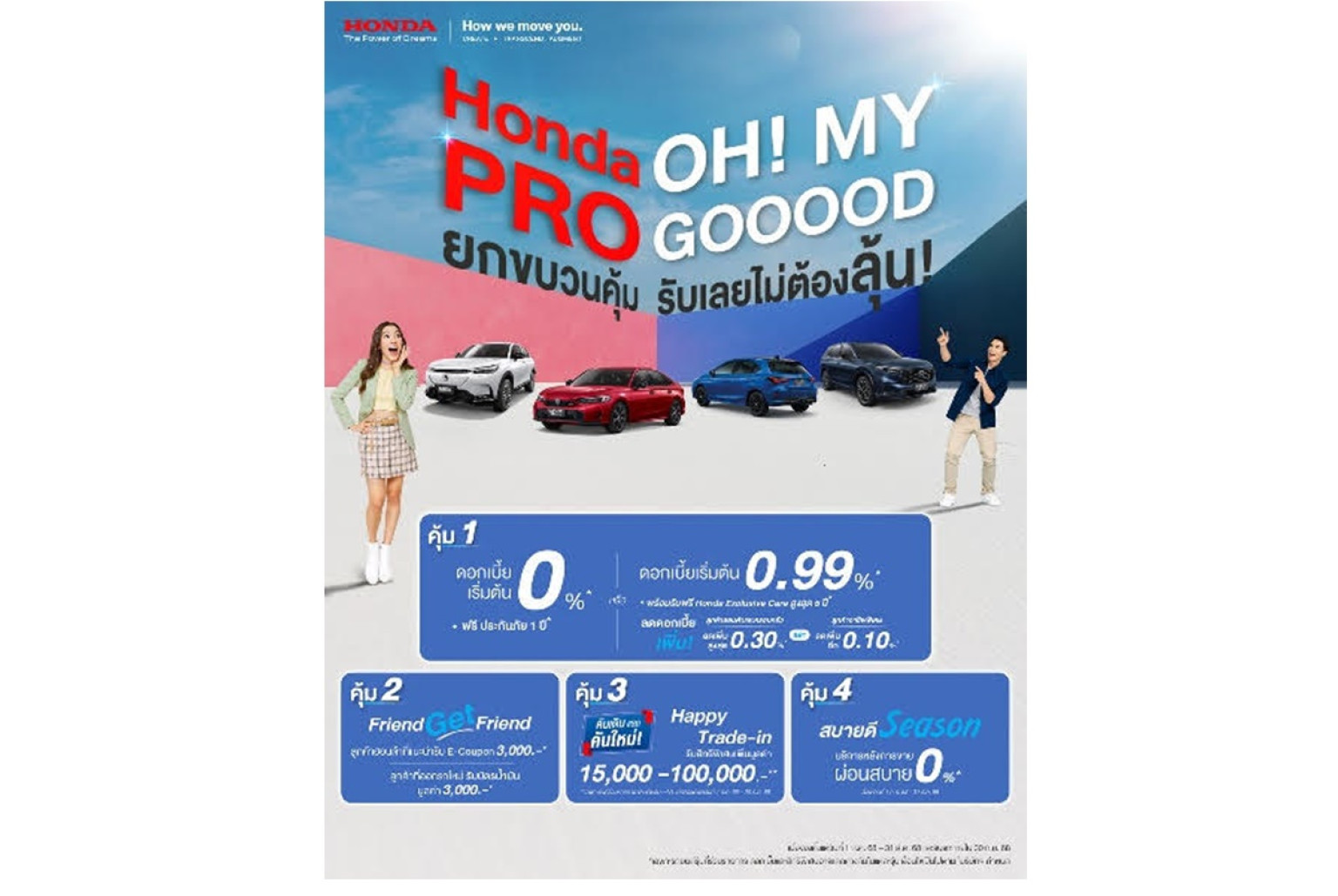 ดอกเบี้ย 0.99% พร้อม Honda Exclusive Care 5 ปี มูลค่ากว่า 205,000 บาท และรับฟรีบัตรเติมน้ำมันมูลค่า 10,000 บาท