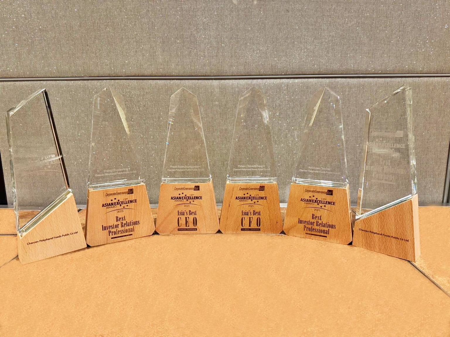 นอกจากนี้ ปีนี้ ซีพีเอฟ คว้าอีก 5 รางวัล จากเวที Asian Excellence Award 2025 ได้แก่ รางวัลซีเอฟโอยอดเยี่ยมแห่งเอเชีย (Asia’s Best CFO) มอบให้ นายไพศาล จิระกิจเจริญ ประธานผู้บริหารฝ่ายการเงิน จากความสำเร็จในการบริหารการเงินและการวางแผนธุรกิจได้อย่างมีประสิทธิภาพ รางวัลนักลงทุนสัมพันธ์ยอดเยี่ยมแห่งเอเชีย (Best Investor Relations Professional) มอบให้ นางกอบบุญ ศรีชัย ผู้บริหารสูงสุด สายงานกิจการองค์กรและลงทุนสัมพันธ์ จากความโดดเด่นด้านการเปิดเผยข้อมูลตามหลักธรรมาภิบาลที่ดี