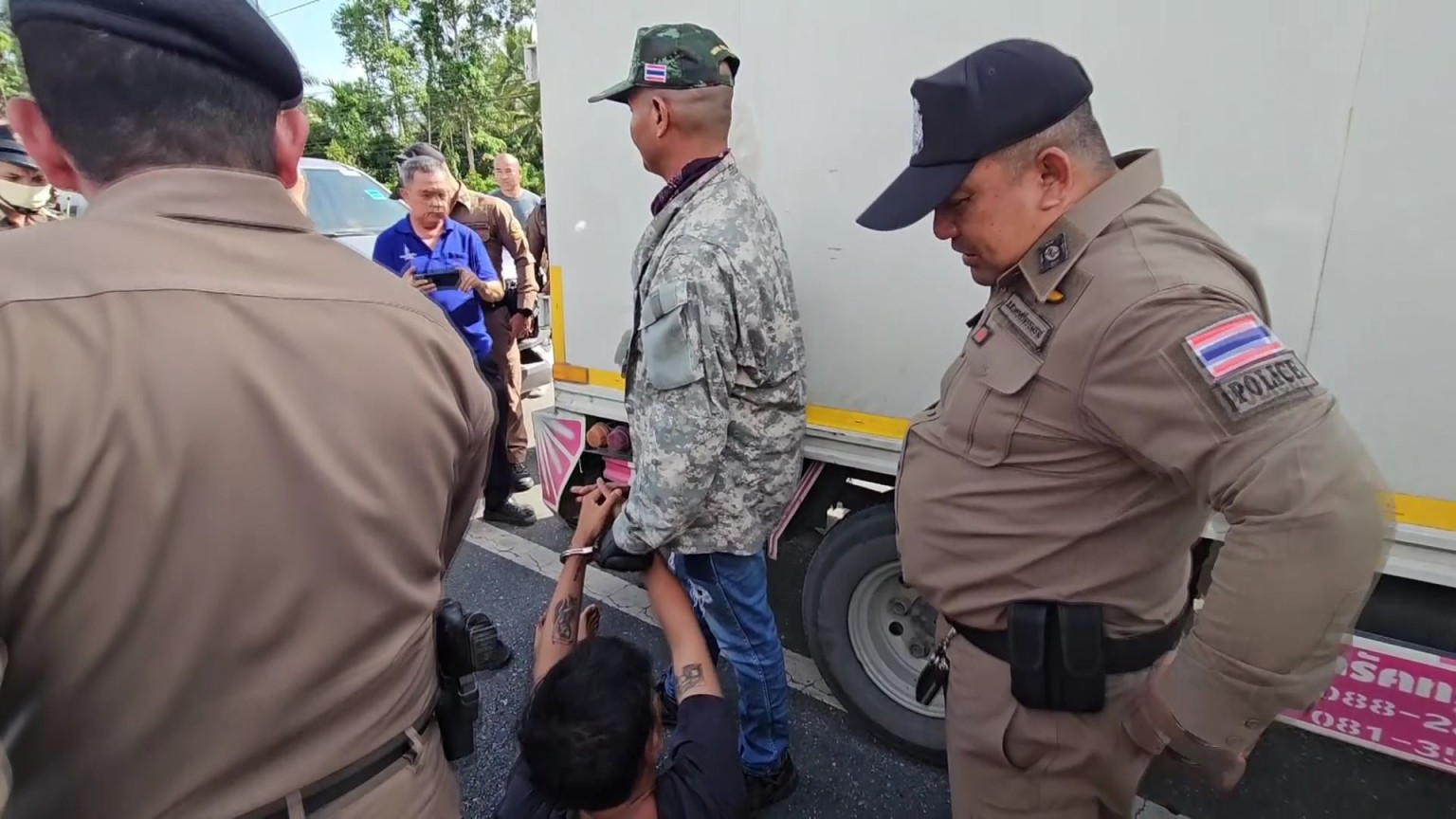 นี่คือภาพเหตุการณ์รถยนต์บรรทุก 4 ล้อใหญ่สี่ขาวแบบตู้ทึบกระบังลมสีชมพูเหนือเก๋ง กำลังถูกรถยนต์สายตรวจอย่างน้อย 3 สถานี ไล่ล่าบนถนนสายพรหมคีรี-นครศรีธรรมราช ช่วงทางเข้าบ้านเขาปูน ตำบลพรหมโลก อำเภอพรหมคีรี และมีการไล่ล่าอย่างต่อเนื่องมาตามเส้นทางมุ่งหน้าสู่ตัวเมืองนครศรีธรรมราช อีกหลายกิโลเมตรก่อนเจ้าหน้ที่ตัดสินใจยิงล้อหลังซ้ายสกัดจนยางระเบิดไม่สามารถไปต่อได้สิ้นฤทธิ์บริเวณหน้าเทศบาลตำบลท่างิ้ว อำเภอเมืองนครสรีธรรมราช เจ้าหน้าที่เข้าคุมตัวยังอยู่ในสภาพมึนๆพูดจาไม่รู้เรื่องจากนั้นจึงคุมตัวสวมเครื่องพันธนาการท่ามกลางความโล่งใจของผู้ใช้รถใช้ถนน