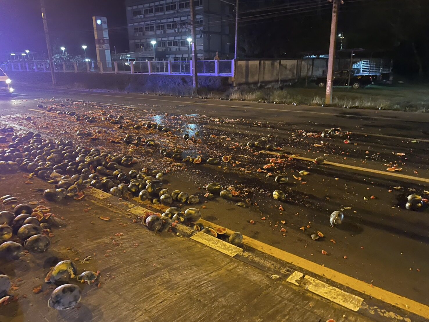 เมื่อเจ้าหน้าที่ถึงที่เกิดเหตุ พบรถกระบะคอก อีซูซุ สีบรอนซ์เงิน ทะเบียนบุรีรัมย์ พลิกตะแคงข้าง โดยล้อหลังหลุด บนพื้นถนนพบแตงโมที่บรรทุกมากว่า 2 ตัน เทกระจาดเกลื่อนถนน ทราบต่อมาคนขับรถกระบะคือ นายชูชัย อายุ 55 ปี ชาว อ.ห้วยราช จ.บุรีรัมย์ ได้รับบาดเจ็บเพียงเล็กน้อย