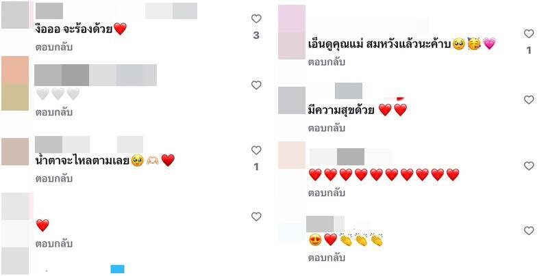 ท่ามกลางแฟนๆ ที่เข้ามาคอมเมนต์ยินดีกันล้นหลาม อาทิ งือออ จะร้องด้วย, น้ำตาจะไหลตามเลย, เอ็นดูคุณแม่ สมหวังแล้วนะค้าบ, ดูแลสุขภาพ อย่าหักโหมนะคะคุมแม่, วันเด็กก้อต้องมีเด็กเป็นของตัวเอง ขอให้คุณวดีแล้วคุณวิน มีความสุขมากๆ นะคับ, น้ำตาคลอตามเลย น้ำตาแห่งความสุข ฯลฯ