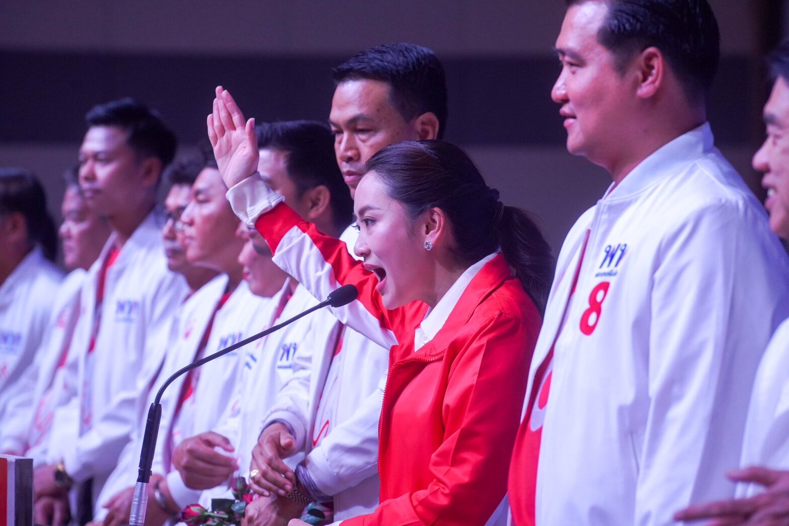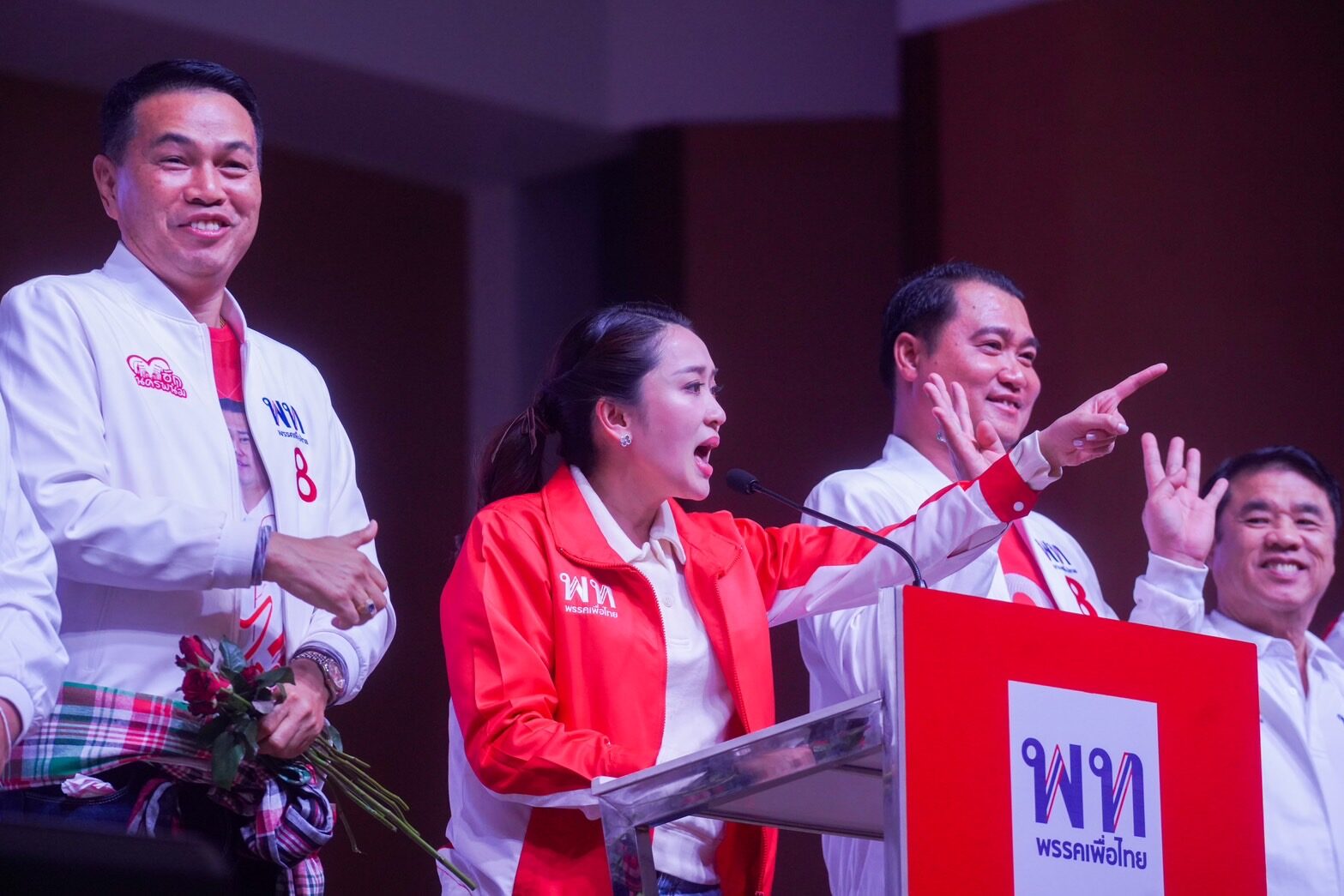 “วันนี้มาถึงพูดอะไรได้ไม่มาก โดนมองจับผิดว่าจะผิดกฎข้อนั้นข้อนี้ ตอนนี้นักร้องเสียงดีเยอะเหลือเกิน แต่เมื่อกี๊ตอนเดินเข้ามามีชาวบ้านกระซิบว่าแอบกดไลค์ในโซเชียลให้ทุกวัน ขอบคุณที่เป็นกำลังใจให้ตน ที่มาหาเสียงวันนี้เป็นข้ออ้าง เพราะอยากได้กำลังใจจากพี่น้องชาวนครพนม ตนจะตั้งใจทำงานอย่างเต็มที่ในส่วนที่ได้รับ ยืนยันปีนี้เป็นปีแห่งโอกาสแน่นอน ขอให้ทุกคนเลือกเบอร์ 8 ขอให้สุขภาพแข็งแรงขอให้รวยรวยรวยถ้วนหน้า” น.ส.แพทองธาร กล่าว