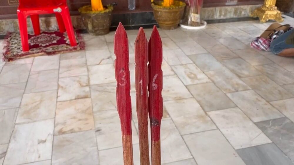 อย่างไรก็ตาม หลังจากที่นางจิตตพัฒน์ กล่าวถวายดินลูกรังแด่หลวงพ่อโตแล้ว ก็ไม่พลาดที่จะเสี่ยงเซียมซี ส่องเลขเด็ด ติดปลายนวม ไว้ซื้อหวยงวดนี้ ซึ่งเลขที่ได้ คือ 316 ซึ่งเป็นที่น่าอัศจรรย์เลข 6 กับ 3 ตรงกับเลขหางประทัด ศาลเจ้านาจาซาไท้จื้อเอี๊ยะกง ในงานส่งเทพเจ้าเมื่อวันที่ 23 ม.ค. ที่ผ่านมา
