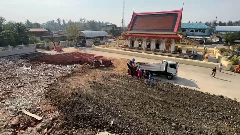 เมื่อวันที่ 24 ม.ค.68 ที่วัดโรงธรรม ต.บ้านปรก อ.เมือง จ.สมุทรสงคราม นางจิตตพัฒน์ อายุ 47 ปี ครูโรงเรียนวัดโรงธรรม และแฟนหนุ่ม เจ้าของรถบรรทุก 6 ล้อ ผู้รับเหมาถมดิน พร้อมเพื่อนๆ กลุ่มรถบรรทุก 6 ล้อ รวมพลคนรับเหมาขนดินลูกรังกว่า 30 คัน มาเทถมที่