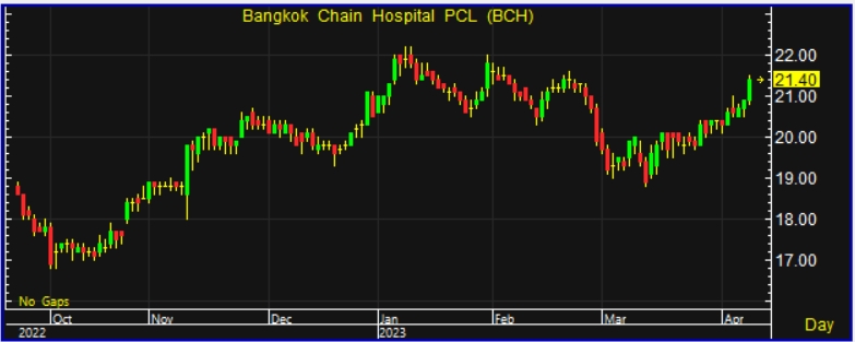 ด้านบทวิเคราะห์ บริษัทหลักทรัพย์ แลนด์ แอนด์ เฮ้าส์ จำกัด (มหาชน) แนะนำ “ซื้อ” เก็งกำไรหุ้น BCH กำหนดมูลค่าพื้นฐานหุ้นปี 2566 อยู่ที่ 22.80 บาท มีอัพไซด์ (upside) 15.5% โดยจะได้รับเงินปันผลงวดครึ่งปีหลังของปี 65 อีกหุ้นละ 0.40 บาท ซึ่งจะกำหนดรายชื่อผู้ที่ไม่ได้รับสิทธิปันผล (XD) วันที่ 9 พ.ค. 2566 และจ่ายปันผลวันที่ 19 พ.ค. 2566 นอกจากนี้ยังรอลุ้นข่าวดีอัตราค่าเหมาจ่ายรายหัวประกันสังคมมีโอกาสปรับขึ้นสูง