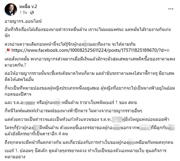 และ ร.ต.อ. …… หรือผู้กอง ……. หมื่นล้าน ราชาเว็บพนันเบอร์ 1 ของ สตช.