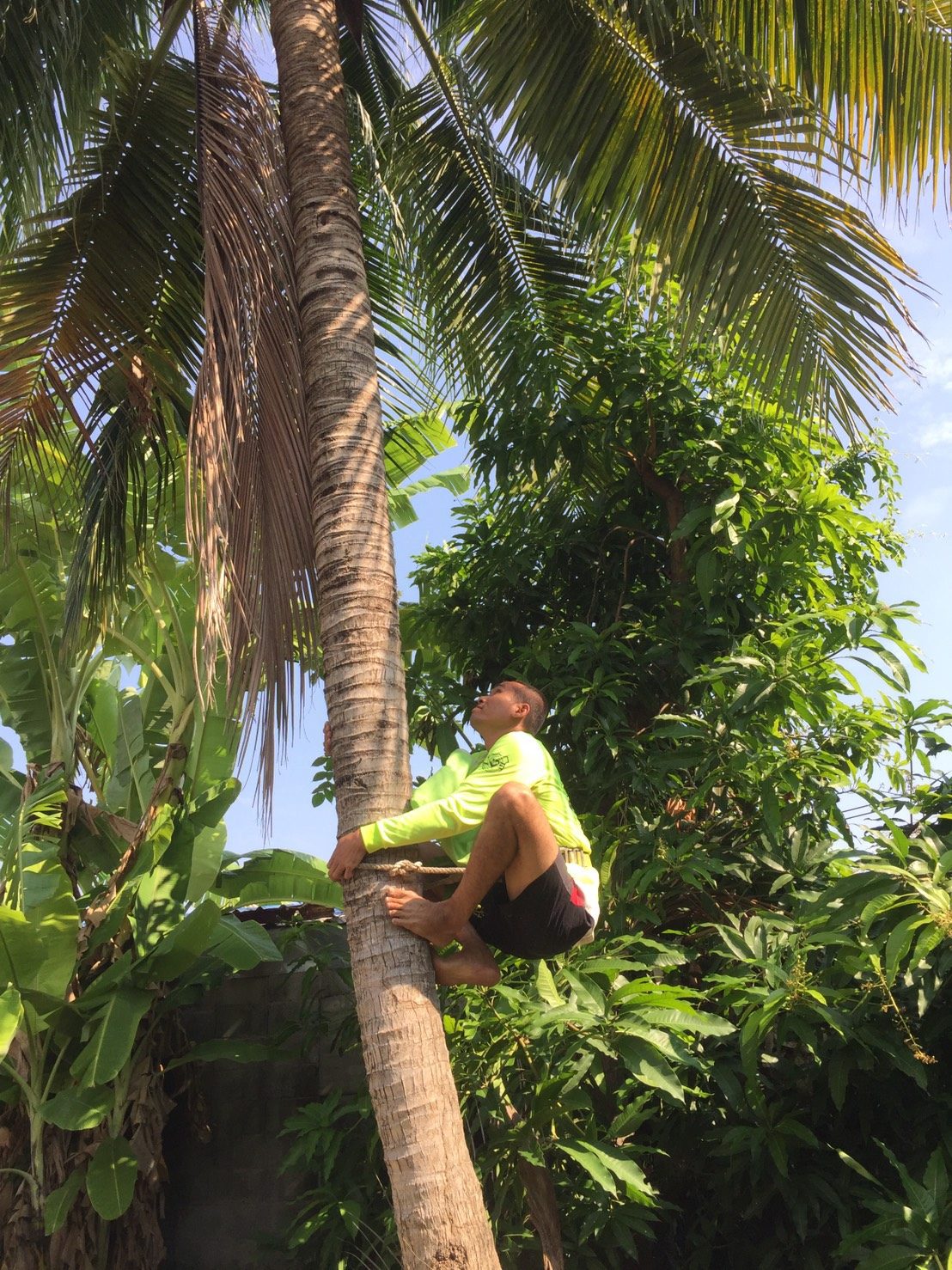 ตนพยายามร้องเรียกให้น้องลงมา แต่น้องร้องเพียงอย่างเดียวมั่นใจว่าลงไม่ได้ จึงโทรขอความช่วยเหลือไปยัง หน่วยกู้ภัยมิตรภาพมงคลธรรม และได้รับการติดต่อกลับในเวลาอันรวดเร็ว เพียงไม่นานมีเจ้าหน้าที่เข้ามาช่วยเหลือ และปืนขึ้นไปบนต้นมะพร้าวด้วยความชำนาญ เพียงแป๊บเดียวสามารถช่วยน้องลงมาได้