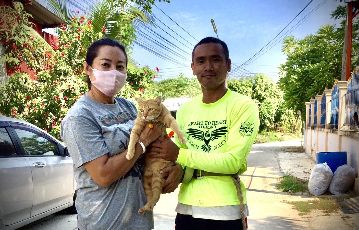 เจ้าหน้าที่กู้ภัย จึงใช้วิธีการปืนขึ้นไปบนต้นมะพร้าวความสูงประมาณ 6 เมตร โดยใช้เวลาไม่ถึง 20 นาที ก็สามารถช่วยเหลือแมวตัวดังกล่าวลงมาคืนสู่อ้อมกอดเจ้าของได้เป็นผลสำเร็จ โดยแมวอยู่ในอาการปลอดภัยดี