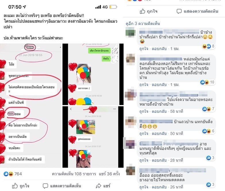 ระอุโซเชียลอีก เพจดัง เจ๊มอย 108 โพสต์ข้อความ “ใครตื่นสาย ไม่ทันโพสท์แชทปลอม อืแมวอยากเป็นเมียน้อยบ้าง ละแมะ ละไม่ว่างจิงๆ อะหรือว่า หรือว่ามีคนอื่น!!