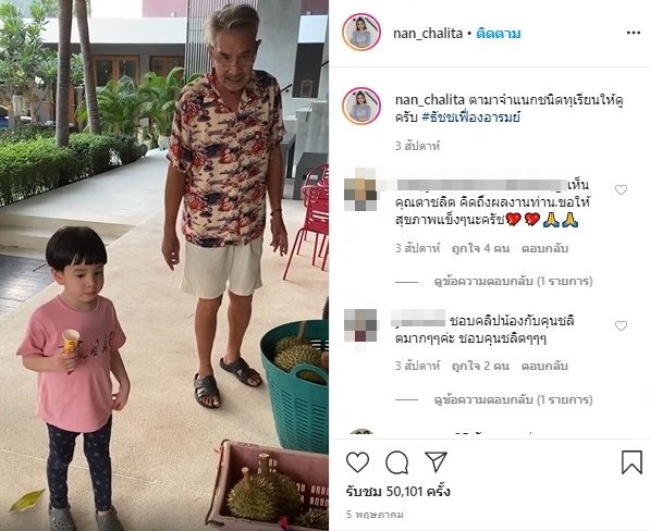 โดยเฉพาะ น้องธัชช หลานชายสุดเลิฟ ก่อนหน้านี้มีคลิป แนน ชลิตา ให้คุณตาสอน น้องธัชช ดูทุเรียนทั้งหมอนทอง ก้านยาว พวงมณี นกกระจิบ