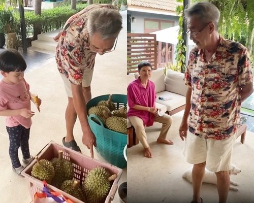 สองตายายน่ารัก ตาตุ่ม-ชลิต ขนทุเรียนสวนอื้อ โชว์แกะง่ายดายให้ น้องธัชช (คลิป)