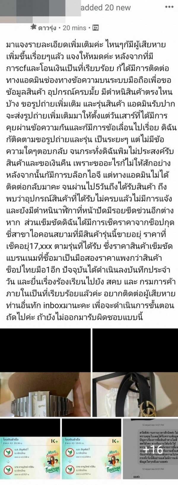 ก่อนจะมีสินค้ามาส่ง และพบว่า สินค้าที่ได้รับ อุปกรณ์ไม่ครบและไม่มีการแจ้ง อีกทั้งยังมีตำหนิรอยขีดข่วนบริเวณหน้าปัดนาฬิกา ส่วนเข็มขัดหลังจากเช็กราคากับทาง Shop พบว่าราคามือหนึ่งขายอยู่ที่ 17,xxx ซึ่งเข็มขัดมือสองที่ตัวเองซึ้อมาราคาแพงกว่าเสียอีก จึงตัดสินใจเดินทางไปแจ้งความลงบันทึกประจำวัน และยื่นหนังสือร้องเรียนกับทาง สคบ. หรือ สำนักงานคณะกรรมการคุ้มครองผู้บริโภค และกรมการค้าภายใน แล้ว