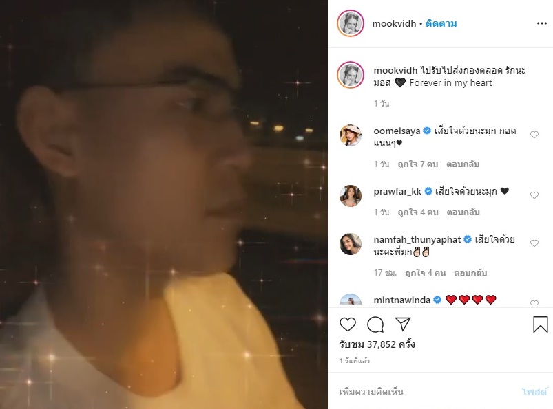 ก่อนจะโพสต์คลิปสุดเศร้า ขณะหยอกเล่นกับพี่ชายในรถ ตอนไปรับที่กองละครฯ พร้อมข้อความว่า ไปรับไปส่งกองตลอด รักนะมอส Forever in my heart