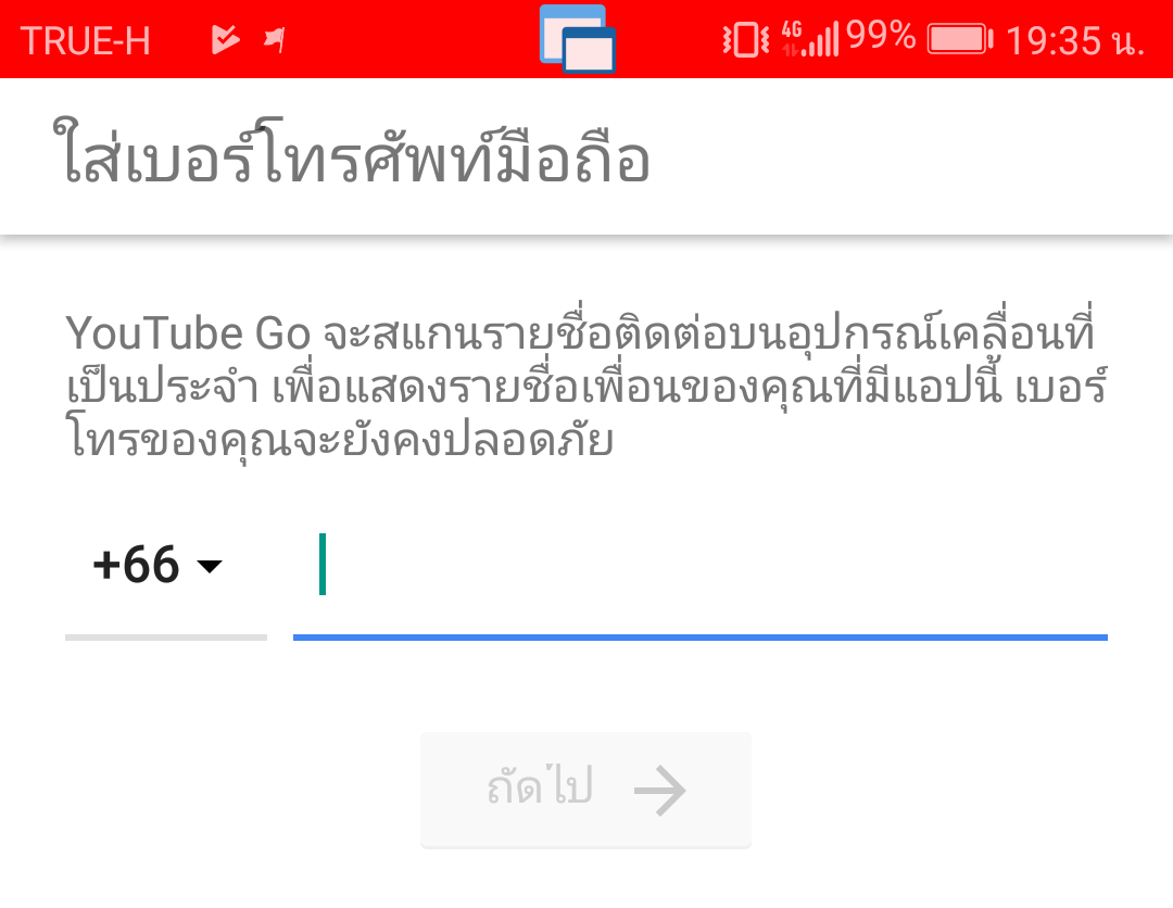 เมื่อเปิดใช้งานครั้งแรก จะบังคับให้ลงทะเบียนด้วยเบอร์มือถือของท่าน (ผู้เขียนยังไม่พบว่าสามารถข้ามขั้นตอนนี้ได้)