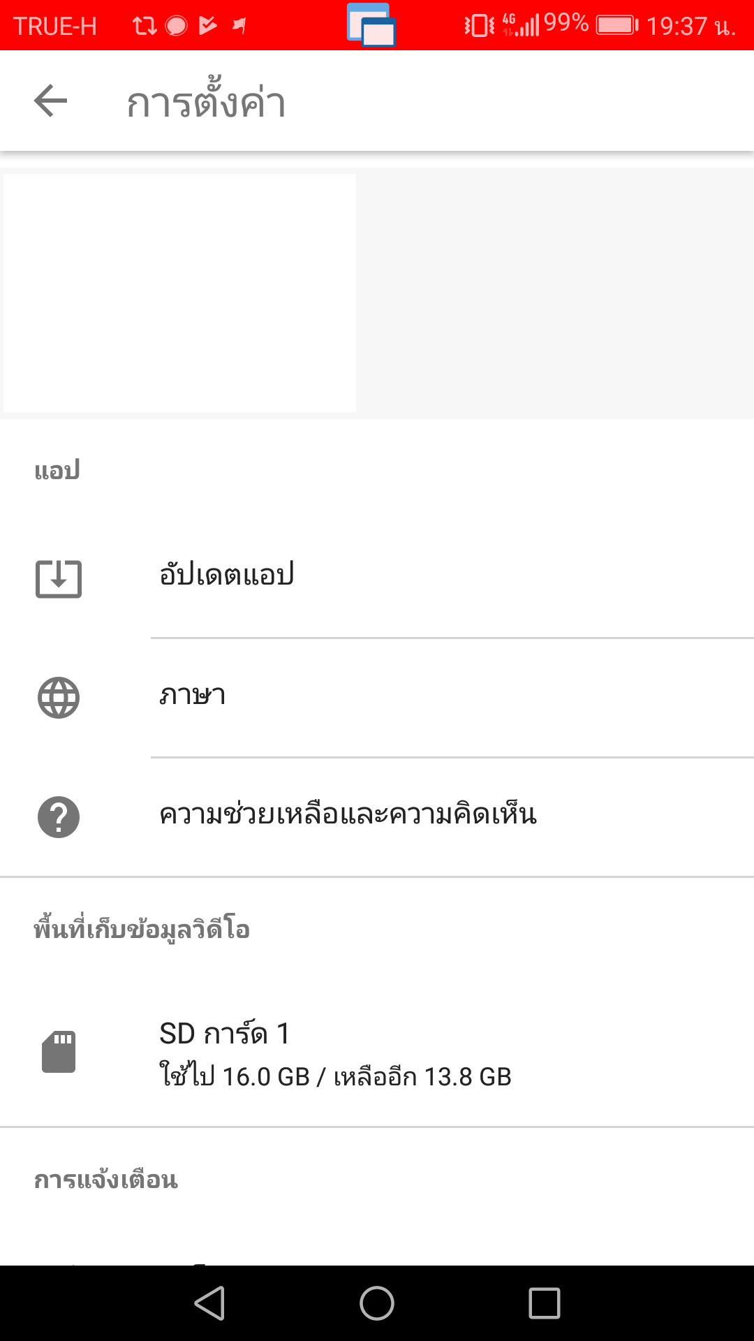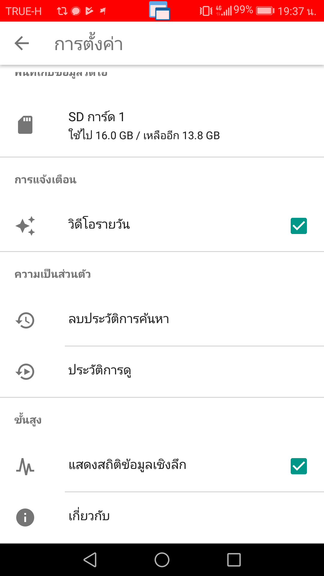 เมื่อดูจากหน้าตั้งค่า จะพบว่าสามารถดาวน์โหลดคลิปไว้ใน microSD ได้ ต่างจากโหมดออฟไลน์ของ App YouTube ตัวปกติที่จะต้องเก็บในหน่วยความจำของเครื่องเท่านั้น