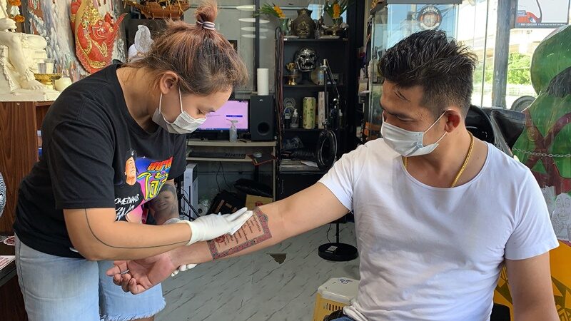 จึงได้ติดต่อร้านพี่จักร ซึ่งเป็นร้านที่ภรรยารู้จัก ใช้เวลาสัก 6 ชั่วโมง ไม่รู้สึกเจ็บเลย รู้สึกว่าตอนภรรยาแกะสิวให้เจ็บกว่านี้อีก