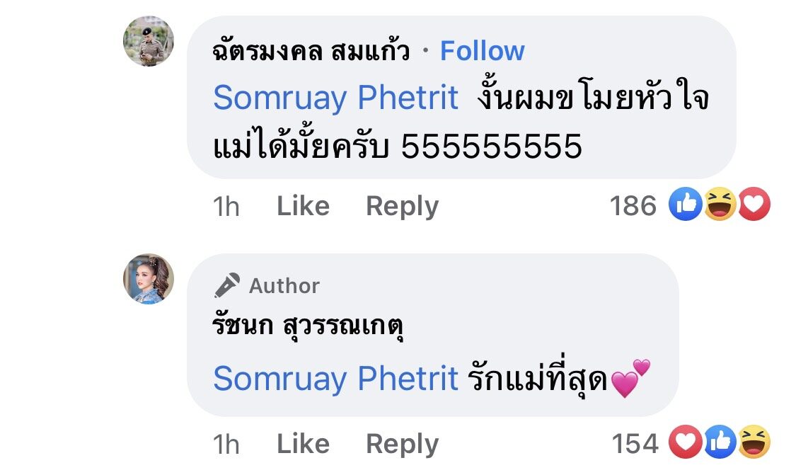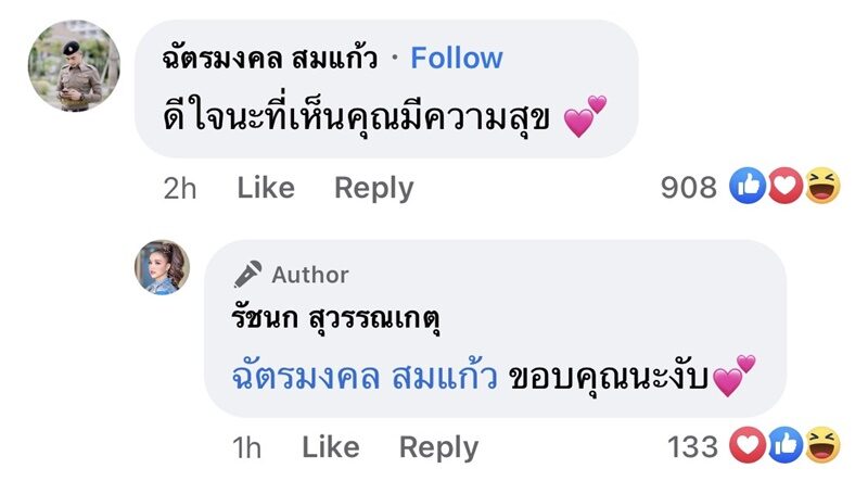 ไม่รู้จะถือว่านี่เป็นการเปิดตัวคบกันของทั้งคู่แล้วหรือเปล่า แต่ที่แน่ๆ คุณแม่ของสาวเจนนี่ดูท่าจะไฟเขียวกับความสัมพันธ์ครั้งนี้ โดยเข้ามาคอมเมนต์ว่า “แม่เห็น ลูกมีความสุข แม่ก็มีความสุข เพราะลูกคือหัวใจของแม่ ” ซึ่งนายตำรวจหนุ่ม เข้ามาคอมเมนต์ต่อว่า “งั้นผมขโมยหัวใจแม่ได้มั้ยครับ 555555555” ก่อนที่สาวเจนนี่ จะตอบกลับคุณแม่ว่า “รักแม่ที่สุด”