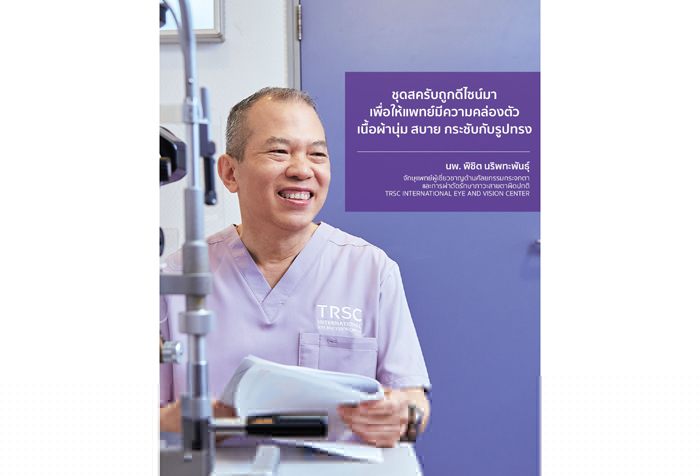 "จริงๆ แล้วแพทย์กับชุดสครับแยกกันไม่ออกนะครับ ดังนั้นต้องมีความรู้สึกที่ดี กระชับกับตัว ทำให้ทำงานได้คล่องตัว ไม่รบกวนการทำงาน" นพ. เอกเทศ ชันซื่อ ผู้อำนวยการแพทย์ TRSC International Eye and Vision Center
