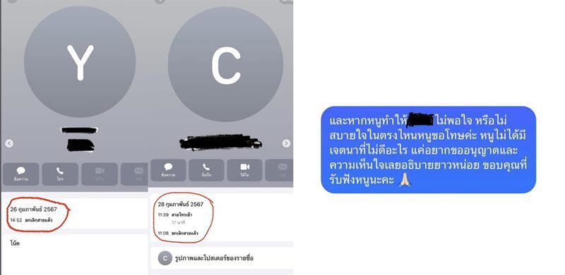 "หลังจากที่เอิงได้ทราบเรื่องในวันแรก เอิงก็พยายามติดต่อเพื่อที่จะขอโทษกับผู้ที่เกี่ยวข้องเป็นการส่วนตัว และได้มีโอกาสพูดคุยกันทางแชทจริงๆ และอยากแสดงความบริสุทธิ์ใจว่าไม่ได้มีการนำเบอร์โทรอื่น นอกจากของเอิงติดต่อไปจริงๆ