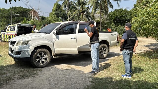 ที่เกิดเหตุพบรถกระบะ ยี่ห้อโตโยต้า วีโก้ ทะเบียน กทม. สภาพจอดอยู่ภายในโรงรถของบ้านหลังดังกล่าว มีกลิ่นเน่าเหม็นลอยออกมาเป็นระยะ ภายในรถพบร่างผู้เสียชีวิตนอนหงายอยู่บริเวณเบาะด้านคนขับ สภาพศพสวมใส่เสื้อยืดแขนสั้น กางเกงยีนต์ขายาวสีดำ เสียชีวิตมาแล้วประมาณ 7 วัน ทราบชื่อคือ นายพิชิตชัย (ขอสงวนนามสกุล) อายุ 38 ปี