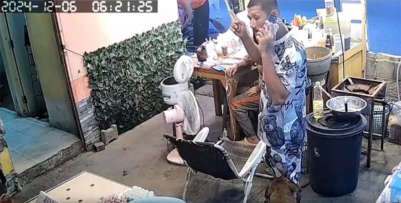 โดยนายจักรได้บุกมาที่หน้าห้องน้ำเอกชนริมถนนชายหาดจอมเทียน แต่ตอนนั้นตนไปซื้อของ นายจักรจึงไปปลุกลูกชายลุกมาจากที่นอน แล้วยืมโทรศัพท์คนแถวนั้นโทรมาหาตน นายจักรถามว่า "ทำไมต้องหนี ผมไม่ทำอะไรหรอก แต่ถ้าไม่เอาไอ้ปลามา ผมเอาลูกชายพี่ไปนะ" พอนายจักรพูดเสร็จก็จับลูกชายของตนขึ้นรถกระบะ แล้วขับออกไปทันที