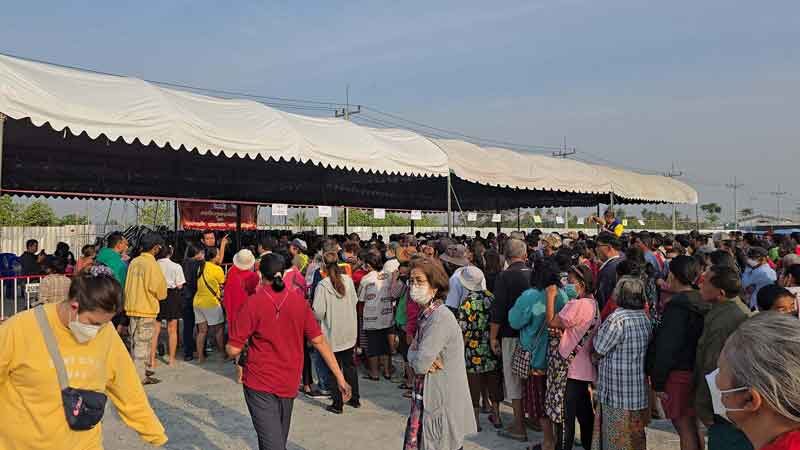 คนมากันเพียบ เจ้าสัวดังเมืองสมุทรสาคร ทุ่ม4ล้าน แจกอั่งเปาชาวบ้าน ฉลองวันตรุษจีน เผยจัดมาอย่างต่อเนื่อง 6-7 ปีแล้ว