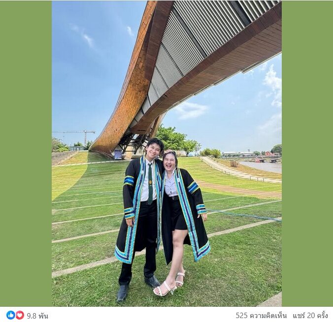 คู่รักแมลงปอ-พู่กัน ที่เคยออกรายการโหนกระแสกรณีมรสุมชีวิตงานวิวาห์ล่มเป็นข่าวใหญ่ ล่าสุดทั้งคู่โพสต์ความสำเร็จจับมือกันรับปริญญา พร้อมแคปชั่นร่ายยาว