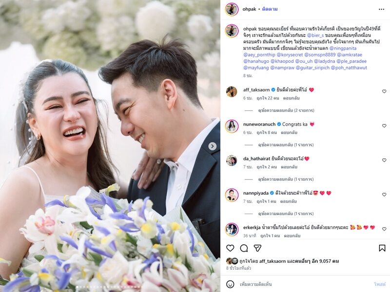 “ขอบคุณนะเบียร์ ที่มอบความรักให้เกียรติ เป็นของขวัญในปี49ที่ดีจิงๆ เราจะรักแล้วแก่ไปด้วยกันนะ @bier_s ขอบคุณเพื่อนๆที่เหมือนครอบครัว มันดีมากกกจิงๆ ไม่รู้จะขอบคุณยังไง ซึ้งใจมากๆ มันเกินฝันไปมากจะมีภาพแบบนี้ เขียนแล้วยังจะน้ำตาแตก @ningpanita @aey_pornthip @korysecret @somspn8889 @iamkratae @hanahugo @khaopod @ou_uh @ladydna @ple_paradee @mayfuang @nampraw @guitar_siripich @poh_natthawut”